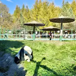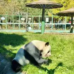 🐼 Since you're already in Yabuli... Let's take a car to Yabuli Panda House. Believe me, it's great. The weather is nice and it's not hot all year round. No wonder the giant pandas look happy. If it were a zoo in other cities in China, the pandas would usually be in the air-conditioned area and sometimes come out to play in the outdoor area. But here in Harbin... it's so fun to sunbathe.