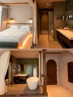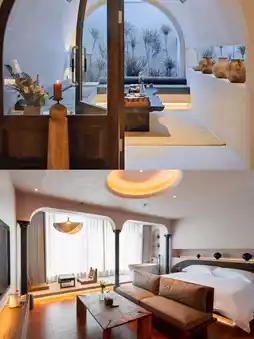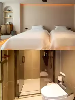 The overall style of the guest rooms is Wabi-Sabi, with warm colors as the main feature. It is simple and cozy, conveying a sense of emptiness and creating an elegant and natural living environment. The interior decoration abandons redundancy and keeps it simple, showing its simplicity and silence, which has the power to comfort people.