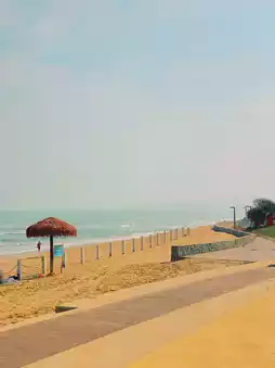 🏖 The coastline stretches for several kilometers, with the sandy beach like a golden ribbon embedded in the sea. Whether at sunrise or sunset, the sky is painted in shades of orange and red, creating a breathtaking view. In the evening, you can also see fishermen returning with their catch, adding a touch of life to the scene.