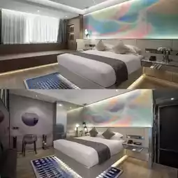 The room is warm and comfortable, with various smart furniture and voice control. The bed and pillow are good for sleeping and resting comfortably~