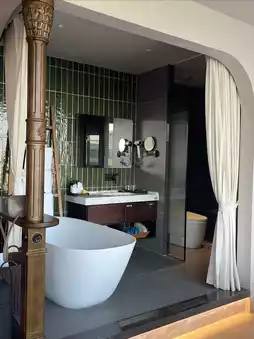 The comfort of the room is more pulled full, the room with full audio and video equipment can watch videos freely, the bathtub in the bathroom is very comfortable, all kinds of toiletries are complete, large floor-to-ceiling windows, plenty of sunshine during the day, can watch the sunset in the evening, it's too beautiful ~