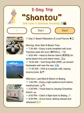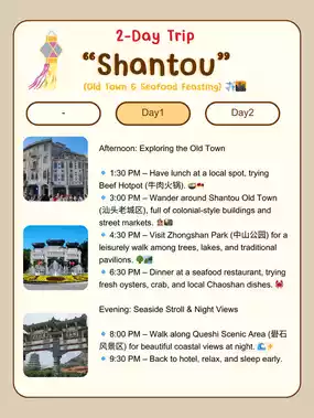 Enjoy your relaxing 2-day escape to Shantou! ๐๐๏ธโจ