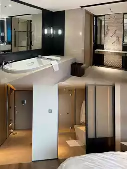 The floor-to-ceiling windows in the 27th-floor lobby are ideal for capturing sea and city views; the "Four-Point Gold" mural on the first floor is full of Chaoshan charm and makes for great photos; the 7th-floor pool is perfect for swimsuit shots; and the elegant 37th-floor executive lounge exudes sophistication in every snap.