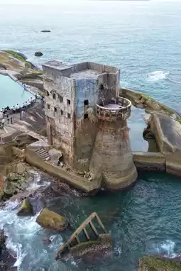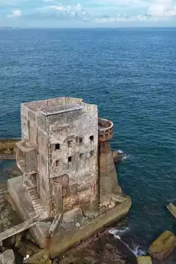 There are graffiti concrete walls, ancient castle watchtowers built with rocks🏰