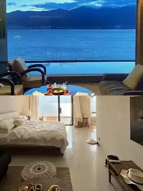 When you're tired, you can lie down on the sea view terrace and enjoy the sea view 🌊 and sea breeze 🍃. In the evening, you can watch the sunset 🌇 here. It's so beautiful.
