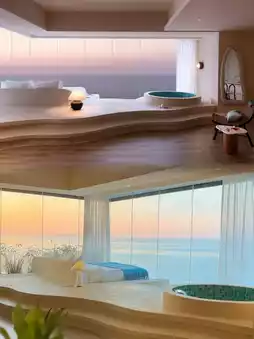 The room design is great, with a super spacious 2-meter bed 🛏️, a milky white main color scheme that is very high-end, a warm and comfortable room, and a 180° beautiful sea view. Cloudy days (sound of rain) & sunny days (sound of waves) are simply amazing. The lazy sunshine shining through the gauze curtain into the pool... These elements can be captured in a blockbuster 📷!