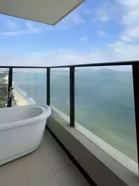 No need to go out, the large floor-to-ceiling window has a 270° unobstructed view of the sea