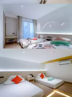 Shanwei Poly Golden Coast, a "beautiful and mysterious" bay, enjoys exclusive access to a 7 km pristine coastline. The seawater is azure and clear, and the sand is fine and soft, as beautiful as a cartoon. It is known as the "Shangri-La on the Sea" in Shanwei. The hotel offers villas with various themes, perfect for team building, family vacations, and parties. It's a stunning vacation destination!