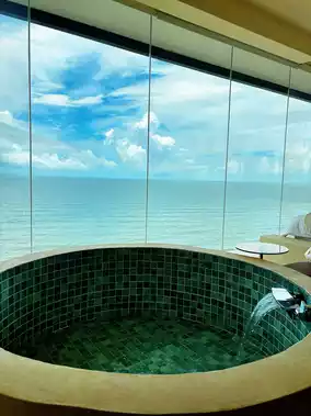 Enjoy soaking in the tub, drinking tea, and watching the sea πΉ
