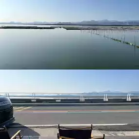 Or you can sit outside the store and enjoy the oyster farm scenery.