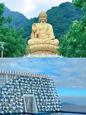 ◦ 🌊Afternoon: Visit the Sea Castle with its dark vintage architecture contrasting with surging waves for atmospheric photos. Then head to Nanhai Guanyin Temple, walk along the rocky boardwalk to enjoy the beautiful sea view and pray for family and friends.