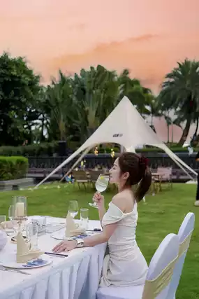 Enjoy the sea breeze and sunset, kids chasing bubbles nearby, dancing on stage, full of atmosphere!