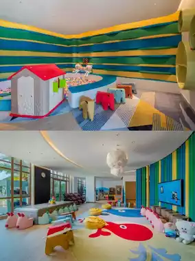 Infinity pool, tropical-style greenway, clearly designed by a Singaporean designer, embodying the âvacation gardenâ concept everywhere; childrenâs pool, outdoor playground, indoor play center⌠comprehensively catering to family needs, making it a qualified resort hotel.