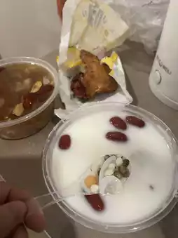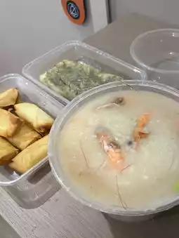 Oyster and shrimp casserole porridge takeout, with chive pancakes and spring rolls (7 yuan each), totaling 40 yuan! The side dishes were crispy and even more appealing than the porridge. The rice in Shanwei is so distinct!