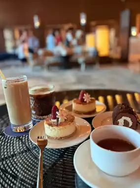 Enjoy a luxurious experience at the elegant lobby of a five-star hotel in Shanwei for just an average of $68. Bask in the serene ambiance with an unbeatable ocean view while savoring coffee and desserts—all for a price slightly higher than a cup of Starbucks. You can relax here for 2-3 hours, making it highly recommended!