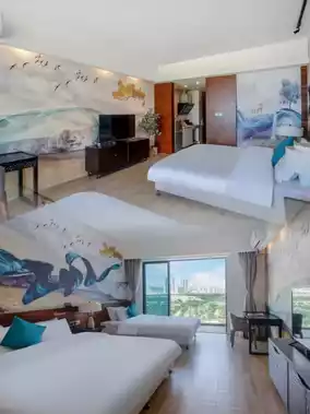 Dongyue Boyang Holiday Apartment in Jin Ting Bay, Shanwei, is truly a paradise for sea view lovers! 🌊 Located in Poly Jin Ting Bay Tianluan Community, just a few steps downstairs to the fine white sandy beach, some rooms even offer direct sea views from the bed, with excellent value for money~