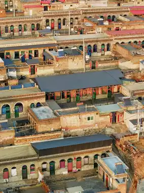 This is a village on the west side of the Taihang Mountains, built on the Loess Plateau. The village produces alum stone for making bricks, so most of the houses are built with kiln bricks produced in the village. Under the sunlight, the whole village appears warm yellow.