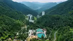 "In Shaoguan's Xinfeng County, a hot spring hotel is hidden in the forest. Xinfeng Yun Tian Hai Hot Spring Hotel is a national 4A-level tourist attraction.