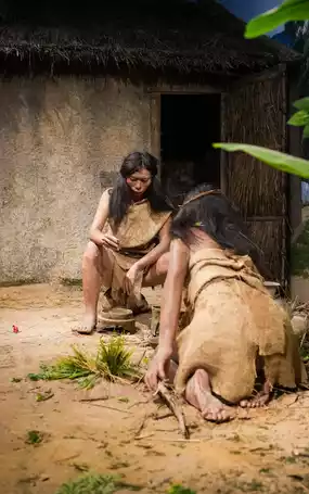 Maba Man Village has some stone sculptures and shows how primitive villages used fire to cook food and catch animals. The sculptures are very lifelike.