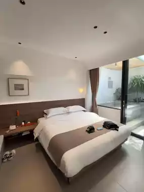 🏖️Room Type: Anxi Lequan Family Suite (61 square meters, accommodates 3 people, includes one double bed and one single bed, with a private hot spring pool)