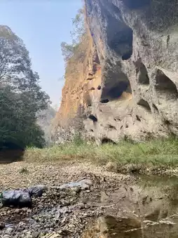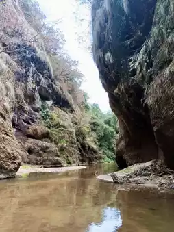 Walking through the gorge, the rock walls on either side alternate between smooth, screen-like surfaces and sharp, blade-like edges. The rushing stream, accompanied by the crisp sound of flowing water, brings a sense of exhilaration. Occasionally looking up, the narrow strip of sky visible between the canyon walls is breathtakingly majestic. This place combines the grandeur of rugged landscapes with the elegance of tranquil beauty. The charm of Tiancheng Gorge lies not in ostentation but in its simple and pure natural allure. Every scene here is a delightful gift from nature, leaving visitors captivated and reluctant to leave.