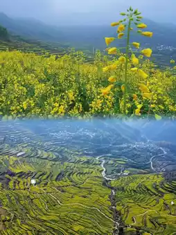1️⃣Rapeseed Flower Terraces: The closest attraction to the starting point, just a few hundred meters walk from the parking lot, and going down the stairs feels like entering the world of Hayao Miyazaki. From mid-March to early April, the rapeseed flowers on Fuchun Mountain will bloom furiously.