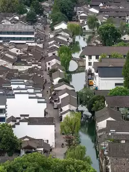 It seems to be a Jiangnan water town forgotten by Shaoxing, with buildings densely packed as seen from Feiyi Building Mountain, resembling a real-life 'Hundred Views of Jiangnan.'