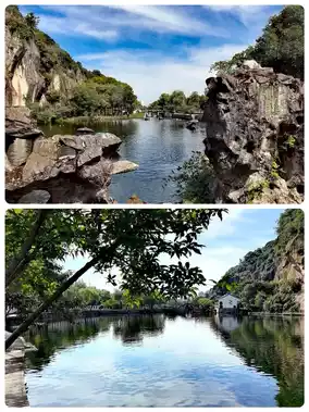 Shaoxing Donghu is like a dazzling pearl embedded in the water towns of Jiangnan. Here, you can find cliffs carved by nature, crystal-clear lake water, and gently swaying black-awning boats🛶, as if it were a natural ink painting that makes people linger and forget to return😜.