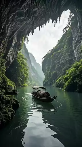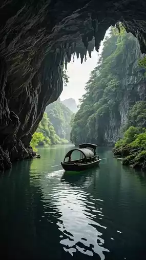 Ride a wupeng boat through "Fairy Peach Cave" | Travel through a landscape painting and get a unique perspective