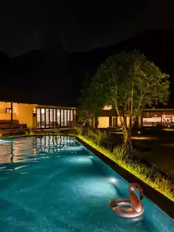 The homestay features a lawn, swimming pool, hot spring pool, and tatami leisure area. Spend the afternoon basking in the sun on the lawn, flying kites, or soaking in the warm hot spring pool under a starry night sky, and feel your fatigue melt away.