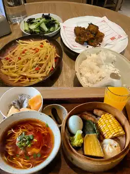 The Shaoxing cuisine at the Wild Food Restaurant is authentic, using fresh ingredients and offering home-style flavors. Every bite feels like a taste of home. The coffee at Wild Cafe is also rich and aromatic. Enjoy a cup of coffee by the window while taking in the scenery for a truly relaxing afternoon.