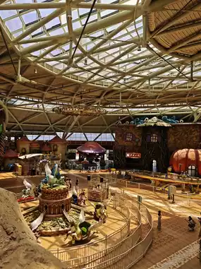 Disney’s team helped create Asia’s largest indoor theme park! A cliffside waterfall hangs from the quarry walls! Coaster tracks welded into stalactite caves!