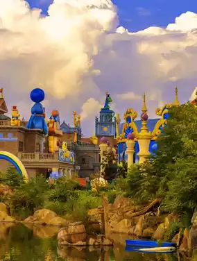 A dome waterfall cascades from the sky! An entire mountain transformed into a giant light-and-shadow forest! Roller coasters flipping 360° inside karst caves!