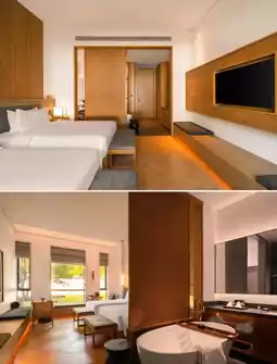 The hotel is designed by the China Academy of Art team, featuring white walls and black tiles blending traditional "taimen" architectural layout, a horizontal three-entry mansion pattern, and a heavy four-slope roof with a meticulously arranged floor plan. "Pu SHOW He Restaurant": a five-star executive chef oversees quality control! It overturns the traditional "stinky and salty" impression of Shaoxing cuisine, with Shengzhou rice cakes as translucent as white jade, Shaoxing three-fresh soup base rich and mellow like Fujian cuisine, and Matsusaka pork blending the essence of Sichuan and Cantonese cuisines. In addition, there is an ancient-style tea room: tasting Longjing/Pu'er tea, lakeside afternoon tea: Jianhu view paired with handmade pastries, and a quiet bar for night talks: Jianhu night view accompanied by special yellow wine/cocktails, the slight intoxication in the night breeze is most pleasant. Fully satisfying parent-child art therapy! Shibolin Stone Sculpture Museum: founder’s private collection of Shoushan stone sculptures, free reservation for visits; Black Pine Bonsai Garden: over 300 rare bonsai arranged like a landscape painting; temperature-controlled infinity pool + Technogym fitness equipment + Yi SPA wellness; children’s beach + Lego/Switch game room, family-friendly; intangible cultural heritage tie-dyeing/ceramics making, take home unique artworks; nearby exploration: Keqiao Ancient Town, Keyan Scenic Area, Kuaiji Mountain Doushuaitian Scenic Area.