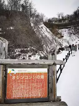 The Oshinkoshin Waterfall is about 30 meters wide with a drop of 50 meters, and the water splits into two streams, hence it is also known as the 'Twin Beauties Waterfall'. Visitors can climb up the steps to get close to the waterfall and appreciate the breathtaking beauty in front of them.