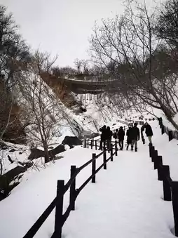 The waterfall does not freeze in winter, and by climbing the snow-covered steps, one can admire it up close, with the babbling brook flowing endlessly among the snowy mountains.