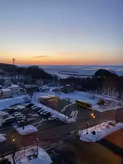 Kiki is located on a hill, so you can see the sea like in the first photo. It's not exactly oceanfront but more of a view. On the day of my stay, the drift ice was packed tightly against the shore, making it look like a snowy landscape. My dream of gazing at the drift ice from my room came true.