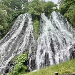 This is a mysterious waterfall without a source. The water flows out from the cliffs and is released after gathering the abundant water from the Shiretoko Mountains. Because the waterfall is divided into two parts by rocks in the middle, it is also called the "Double Beauty Waterfall". The waterfall is about 30 meters wide and has a height difference of 50 meters.