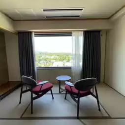 The room is large, and the shower and toilet are separated into wet and dry areas. There is also a balcony where we can enjoy tea while looking at the open view outside the window.