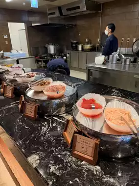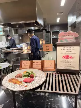 The buffet features an abundance of seasonal Hokkaido dishes, including seafood from the Okhotsk Sea.