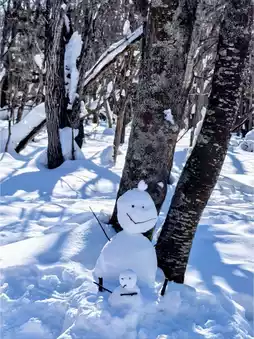 ๐12:40 PM: The ARPA guide picked us up from the hotel lobby and drove us to the Five Lakes. It turned out that they waited for all the cars to arrive before opening the gate. At 1:30 PM, after putting on our snowshoes, we set off. Each guide was followed by a line of "ducklings," and we entered the area in separate groups. On the way from the fifth lake to the first lake, we saw bear footprints and the entire lake surface covered in snow. We slid down a snowy slope and drank the tea the guide brought. It was my first time seeing such thick snow in a forest. If I wasn't careful, my legs would sink in. As we progressed, the wind and snow intensified, and the guide quickly changed our route. It's a little disappointing that we didn't see any animals. Although the entire hike only lasted 2 hours, my legs felt heavy.