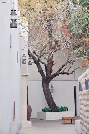 🕌️The circular wind tower outside the reception area is said to be the oldest in the UAE and has become a symbol of the hotel. The guest area is in another secluded space, with high walls in the corridors leading to a serene path. The second floor also has connecting aerial corridors; though not large, they resemble a maze, and it's easy to get lost when first arriving, adding to the sense of mystery.