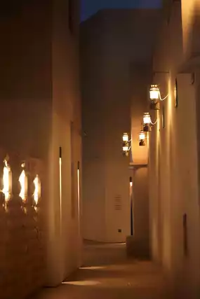 🏨Al Bait means 'home'. This radiant 'home' located in the heart of Sharjah is a precious historical conservation artifact in itself, constructed mainly of wood and rammed earth, exuding a sense of history with ever-changing light and shadows at different times, and a dreamy light at night, making one feel as if they are in another era.