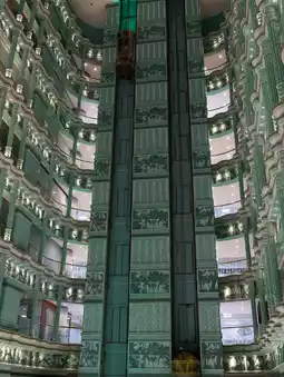 The moment you enter, you're greeted by gleaming emerald-green marble floors that stretch endlessly. Gold-leaf accents dance across ceilings while crystal chandeliers cast magical rainbows everywhere. It's pure opulence!