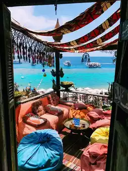 It is like an antique market on the edge of a cliff, with a very exotic Arabian style, and two different styles during the day and at night. During the day, drink juice and enjoy the sunshine, beach, jelly sea and sunset. At night, smoking hookah, drinking wine, and being tipsy, I break into the reality of the Thousand and One Nights and feel the dreamlike world of Arabian Nights. And the consumption here is not too high, it is definitely worth going! ! !