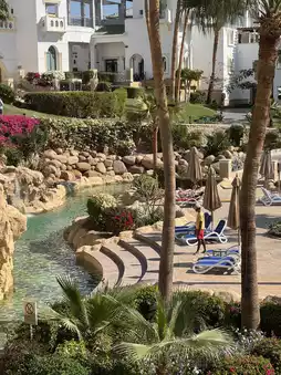 The outdoor pool at Egypt's Park Regency Sharm El Sheikh Resort is truly impressive in scale. Its spacious design ensures a relaxing and uncrowded swimming experience, while the shimmering water under the sun adds an exotic touch to the atmosphere. Simply lying on a sunbed and admiring the harmony of the pool and palm trees is a rejuvenating experience.
