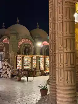 Standing tall in front of the Old Market, the Sabaha Mosque is a beautiful structure that perfectly captures an exotic atmosphere. During the day, its beige exterior reflects the sunlight, radiating vividly, while at night, the lights create a dreamy atmosphere.