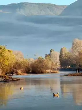 1️⃣ The grass is slippery with frost in the morning on the banks of Heihui River, so be careful when walking.