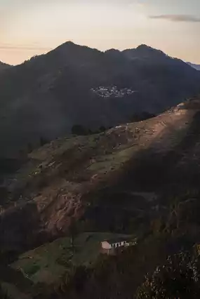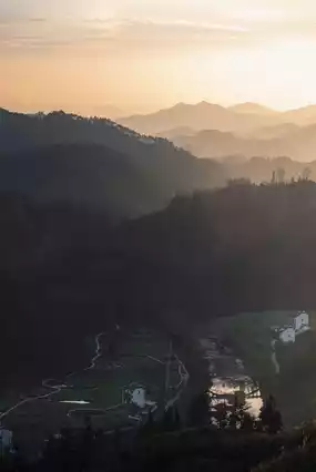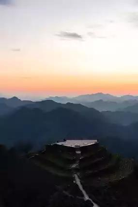 Looking out, layers upon layers of mountains stretch to the horizon, and the cloud-top homes in the mountainside seem like a fairyland of 'unknown evenings'.