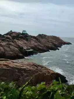 The most touching thing on the island is the beautiful scenery of Bare Mountain, a piece of bare yellow mountain stone, extending long into the sea, with waves crashing on the shore, rolling up layers of white edges.